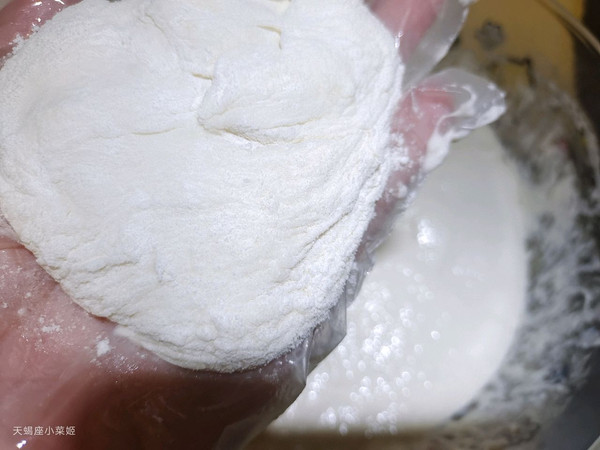 再将生坯放在面粉盘中,蘸上一层面粉 双手将其团圆,抖去多余的面粉