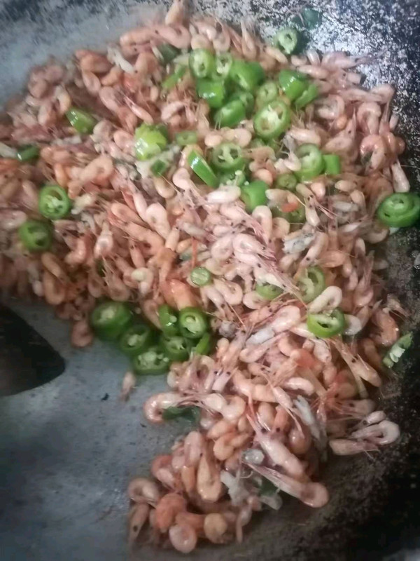 放入河虾翻炒至变色