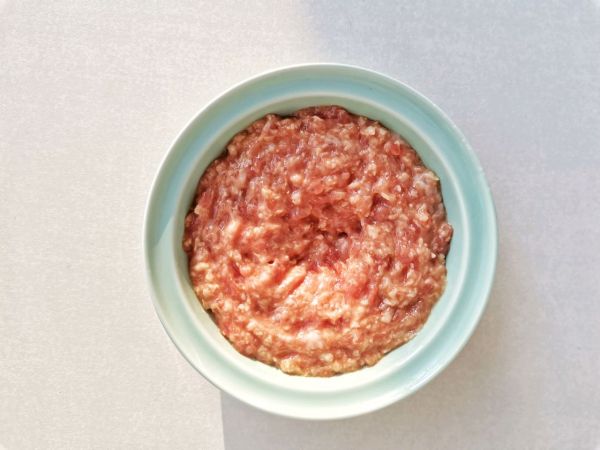 倒入碗里整理好 然后在肉馅中间挖一个窝窝