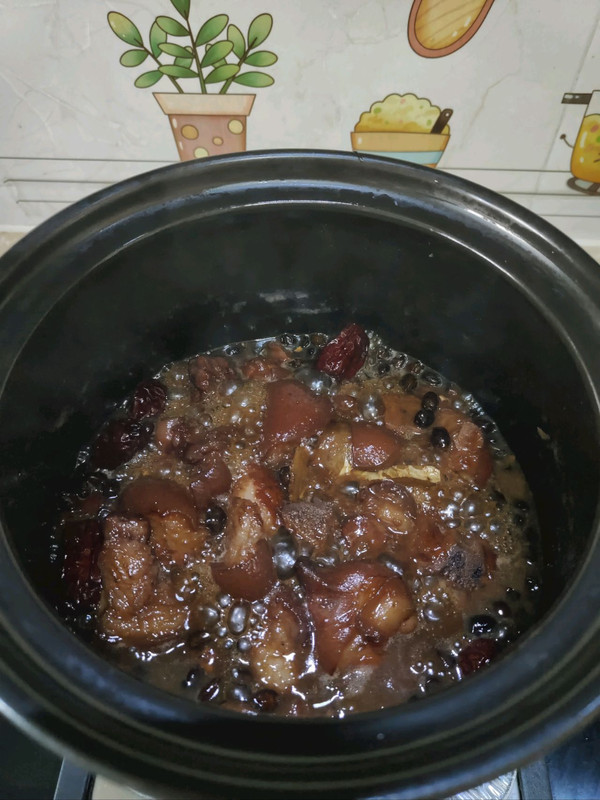 所有食材准备就绪,猪脚、黑豆、红枣、姜、甜酒酿。