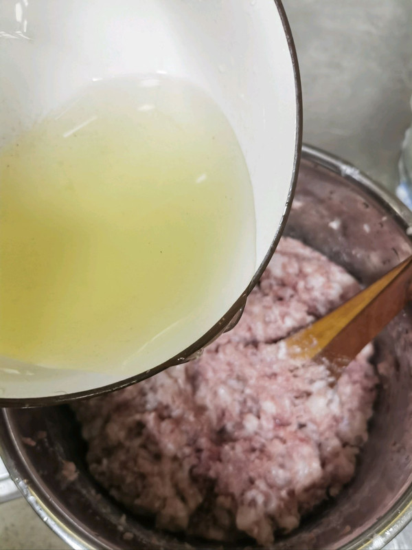 泡葱姜水 打到肉馅里面