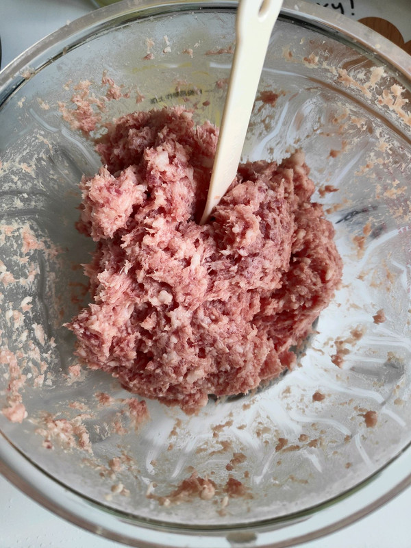 肉馅搅拌上劲,一般一根筷子能站在里面不倒就可以了