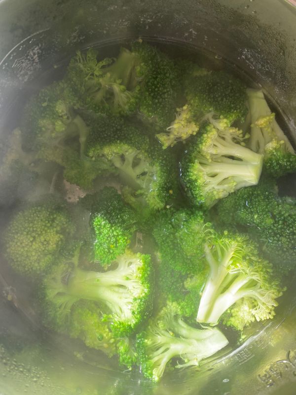 水中加适量盐,油煮开,加入西兰花焯水断生洗净备用