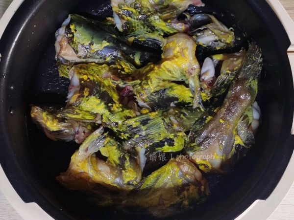 加入嘎鱼,煎2面金黄色,(入锅后不要着急翻面,等鱼自动脱离锅底再翻面,鱼完全不破皮。)