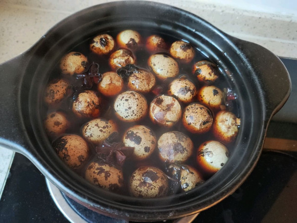 鹌鹑蛋煮开,继续小火煮2分钟,焖3分钟。