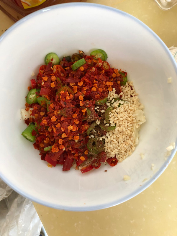 用这个时间调个蘸水,蒜,小米辣,二荆条,辣椒面,花椒面,芝麻,用热油激发香味,再放点醋,生抽,耗油,味精,葱。