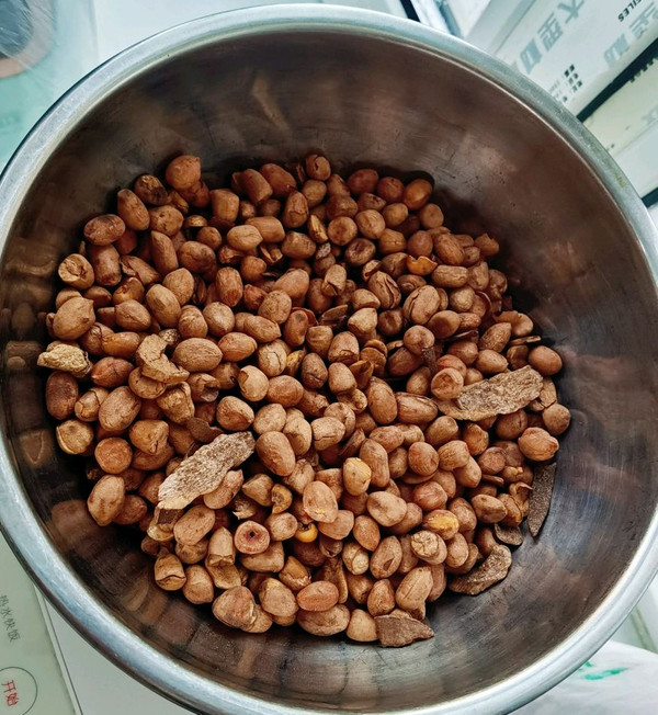把食材以及香料放入花生种,倒入水没过花生,侵泡半个小时,让他充分的入味儿。