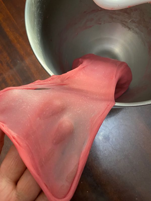 3档搅拌均匀吸收黄油后再转中5档揉面5-8分钟,揉出手套膜。