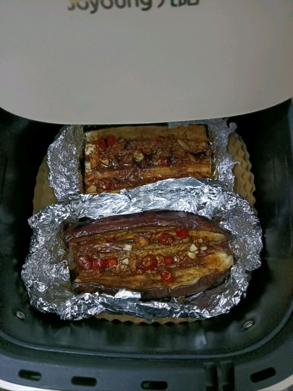 美味的空气炸锅烤茄子完成,可以美美地吃啦