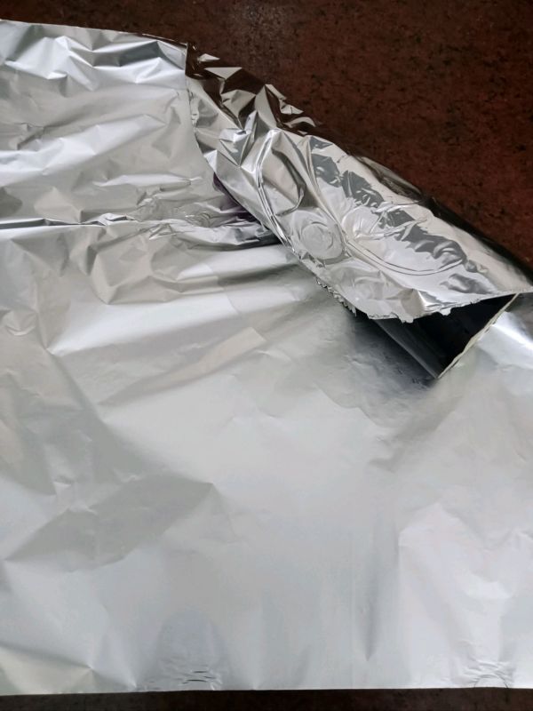 在空气炸锅里垫上一张专用纸盘,然后把用锡纸包好的茄子放在专用纸盘上,温度180℃烤20分钟