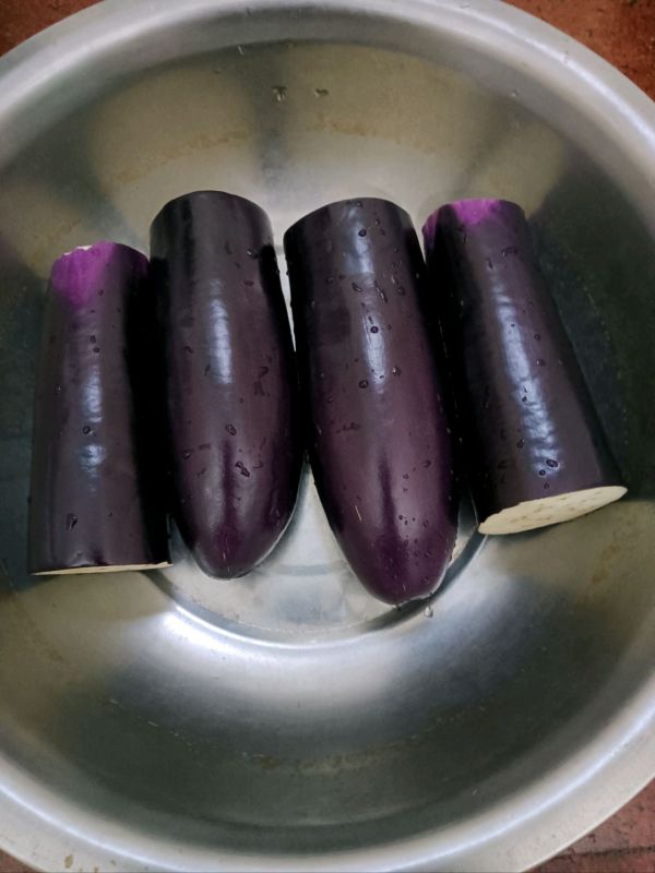 把茄子表面抹干,在茄子皮表面涂一层食用油