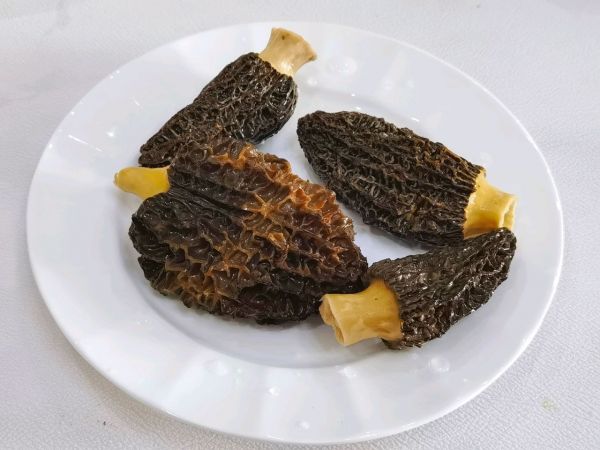 新鲜羊肚菌用清水浸泡,用刷子轻轻刷掉表面的灰尘,如果个头太大,就给它切两半。