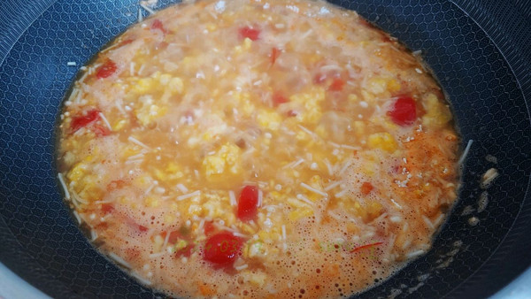 扒拉扒拉根据自己想要汤量往锅里加水烧开切金针菇