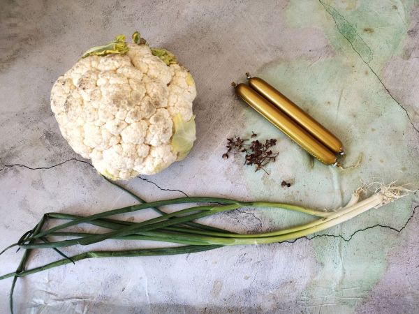 入淘洗干净的花菜,转大火,翻炒三分钟
