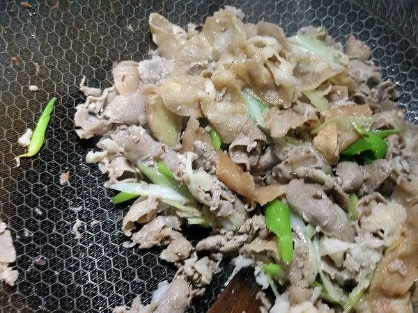 孜然粒半勺,葱,腌,生抽一勺,料酒一勺翻炒