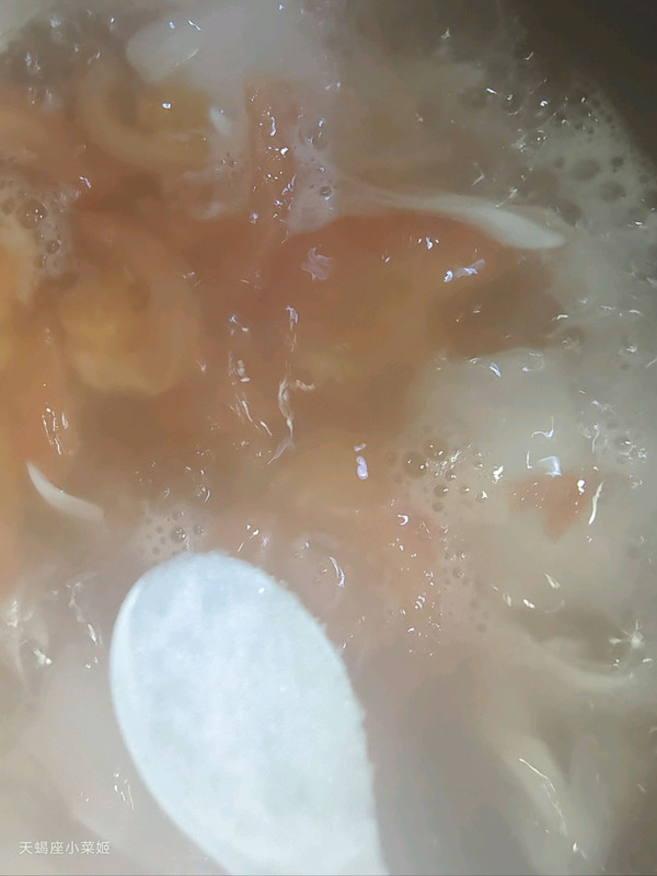 最后上个成品图。剩馄饨皮秒变西红柿面片汤完成。感谢收看!