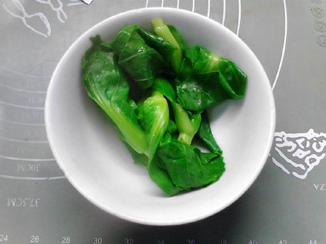 煮方便面的时候将白菜苔放入水中烫至断生,