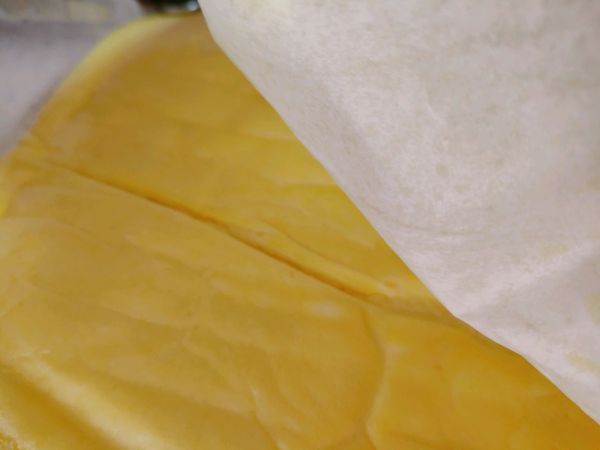 再重新翻过来放到油纸上,上边盖上油布,在烤架上晾凉。