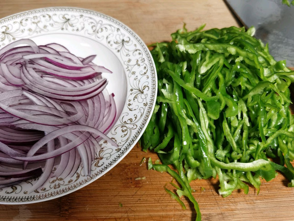 青椒丝和洋葱丝切好备用
