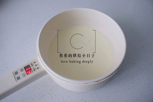 开小火加热,煮至边缘开始冒泡,温度大概八九十度左右。