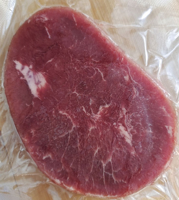 准备牛排1块,常温下自然解冻,洗干净备用。