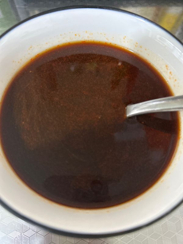 调汁:1勺黄豆酱,2勺生抽,半勺老抽,半勺醋,1勺蚝油,适量糖, 1勺淀粉,半碗水。
