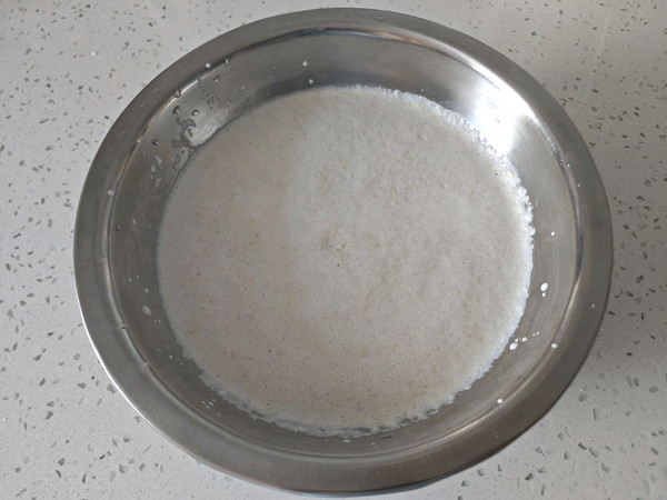 米浆中放入350克普通面粉,5克法国乐斯福燕子酵母。