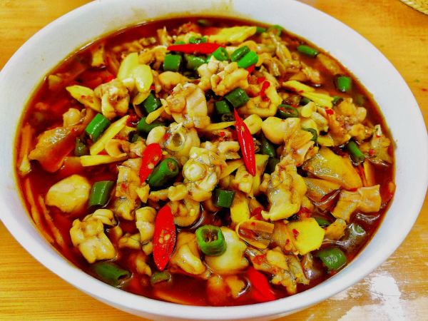 1.老姜、大蒜剁成蒜米,仔姜切片(也可以切丝),小米辣切圈,青椒切圈,泡椒切圈备用。