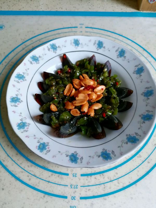 倒到码好的松花蛋上,再放点花生米就OK啦