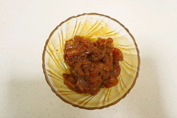 瘦肉片中加少许底盐,老抽,白胡椒粉,白糖,玉米淀粉,搅拌均匀