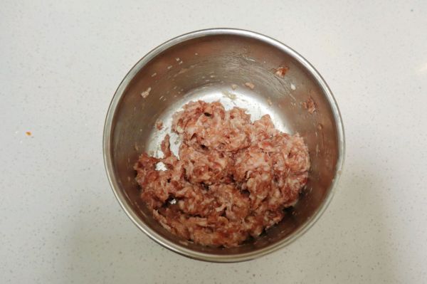 肉馅中放盐2克,糖2克,白胡椒粉1克,蛋清一个,一勺玉米淀粉,搅拌均匀