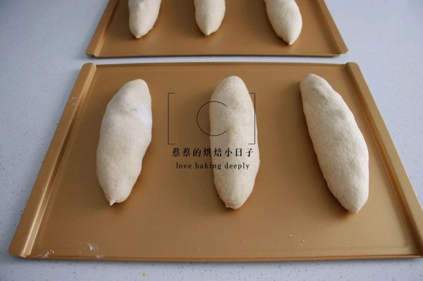 开始最后发酵,温度30-32度,湿度80%,可以放进发酵箱或者烤箱发酵,烤箱没有湿度调节,可以放一碗温热水保持湿度。 发酵至大概1.5倍大,面团光滑有弹性,手指按压面团会缓慢回弹。