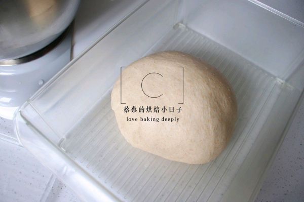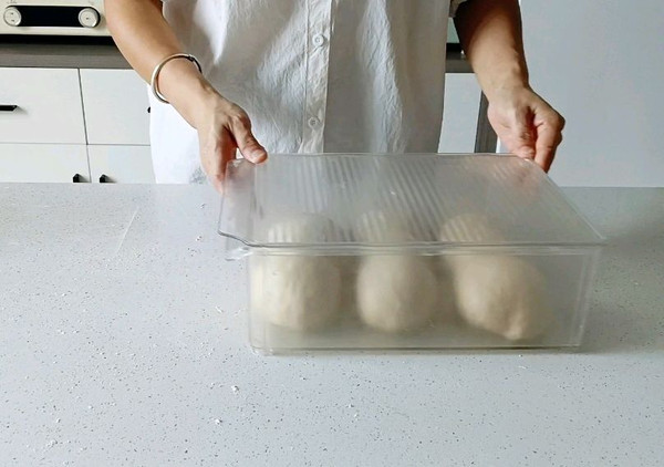 揉好的面团收圆放发酵盒中,盖上放进冷藏发酵箱或者放进冰箱隔夜冷藏发酵。
