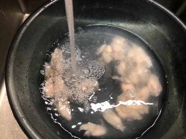 把海蛎先用水洗一遍,然后抓一把面粉搓洗,用流水多冲洗几遍。