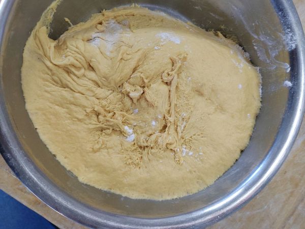 将搅拌成絮状的面粉揉成光滑的面团,进行发酵至两倍大