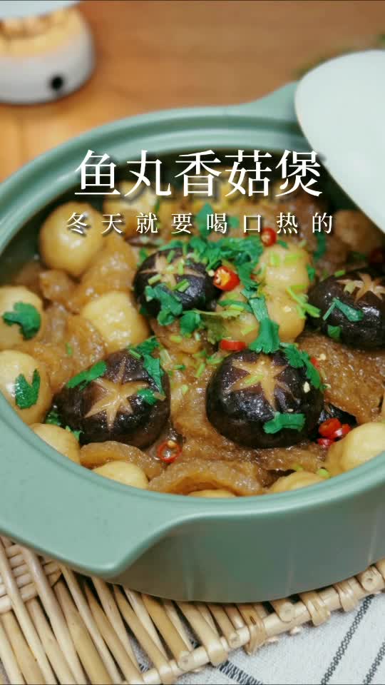 #冬日治愈时刻#冬天,就想吃点热乎乎的~鱼丸肉皮香菇煲(