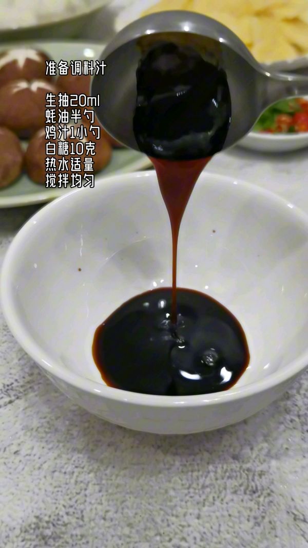 锅中倒入食用油烧热,倒入食材翻炒,倒入调味料汁翻炒均匀。