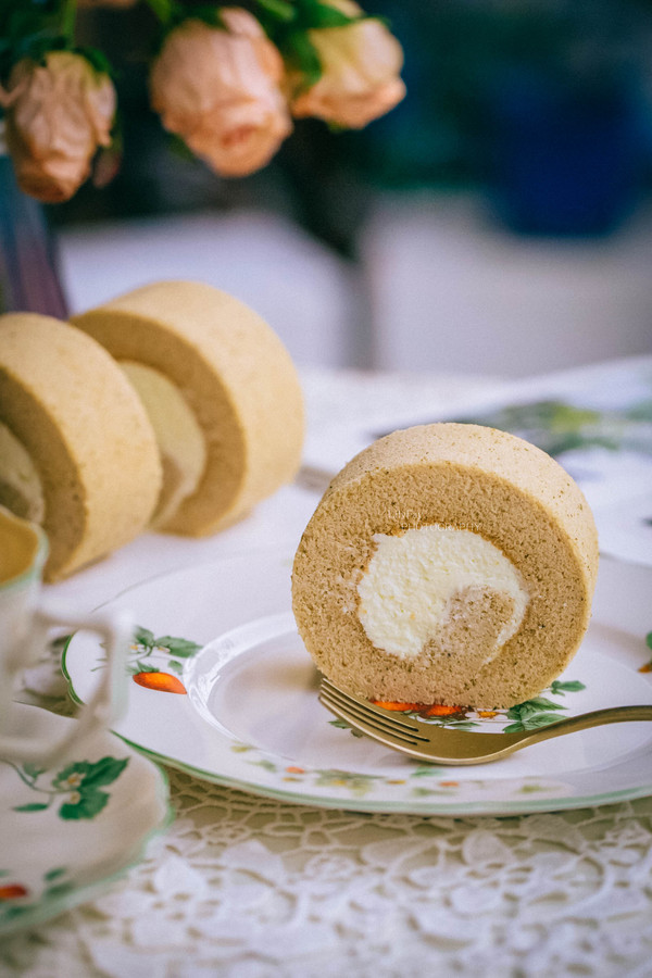 #冬日治愈时刻# 茉莉雪芽奶茶瑞士卷,吃腻了伯爵奶茶快换换(