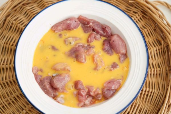 猪里脊切片切条,分次加入适量葱姜水抓至吸收