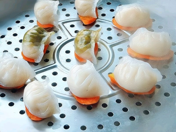 14.蒸熟的饺子,晶莹剔透、爽滑清香。