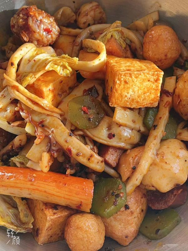 食材,鱿鱼,广味肠,午餐肉,虾。鱿鱼,虾,用水焯熟