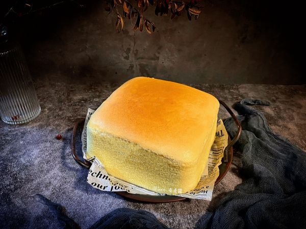 蛋糊倒入内部铺油布的6寸方形固底加高模具中,震出气泡
