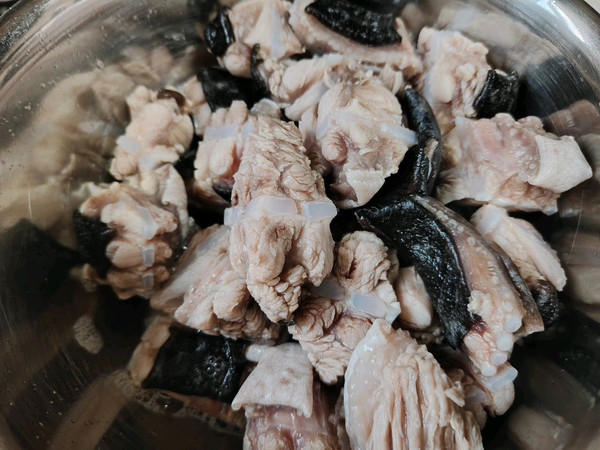 加入一碗清水,再倒入生抽,老抽,盐,糖,盖盖子闷煮