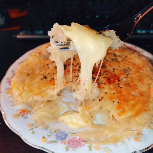 盖上一张稍微解冻的手抓饼;