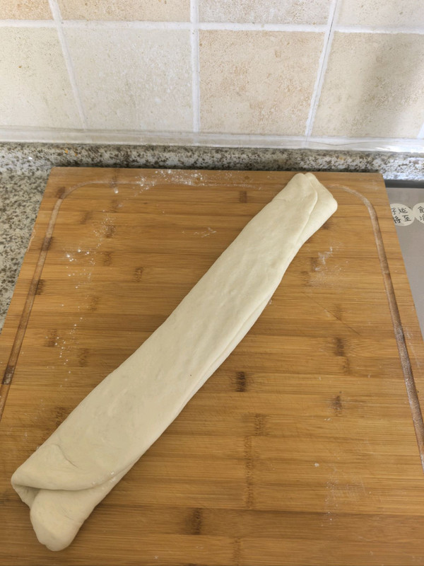 面团擀成这样的大长方形,不用擀太薄,刷一层油撒少许干面粉折起来。