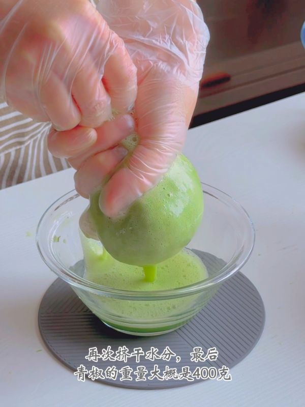 加入9克食盐,杀出青椒水分,给青椒入底味