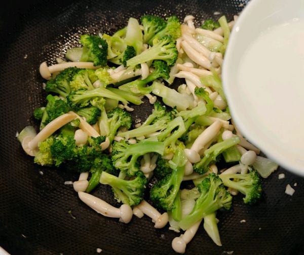 放入白玉菇翻炒。