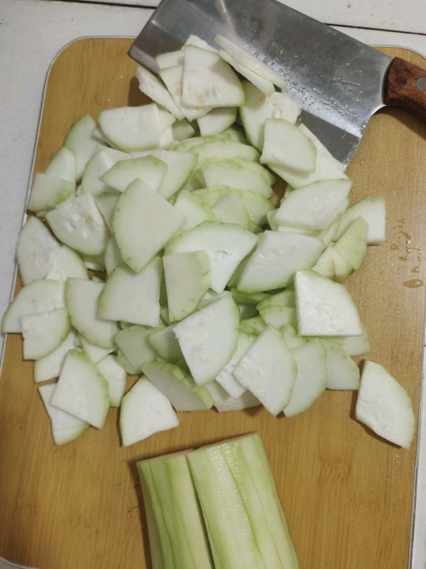 清洗干净,一分为二,再二分为四,切成片!(也可以根据自己的喜好切成小块!)