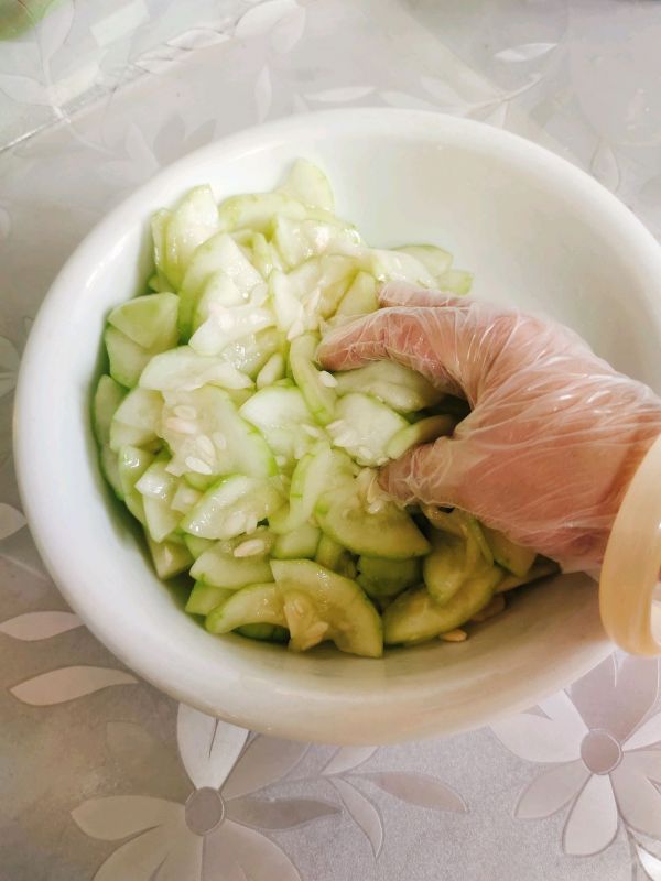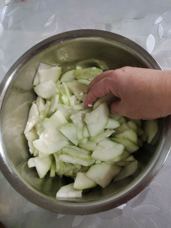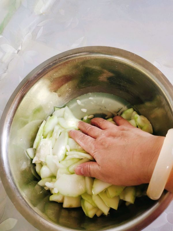 翻拌均匀,要让每片葫芦都粘上食用油!