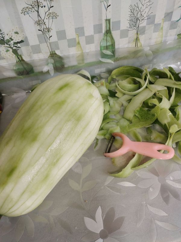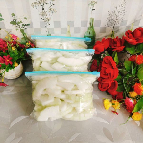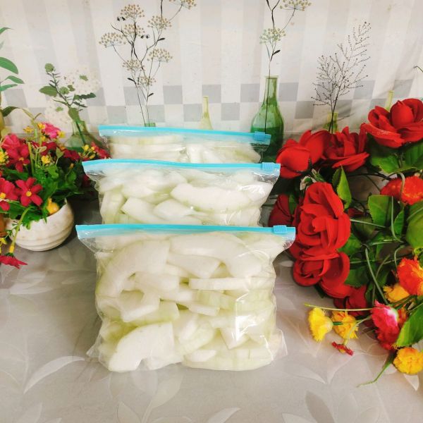 冬瓜清洗干净,把一半的冬瓜再对半切开,切成厚一点的片!